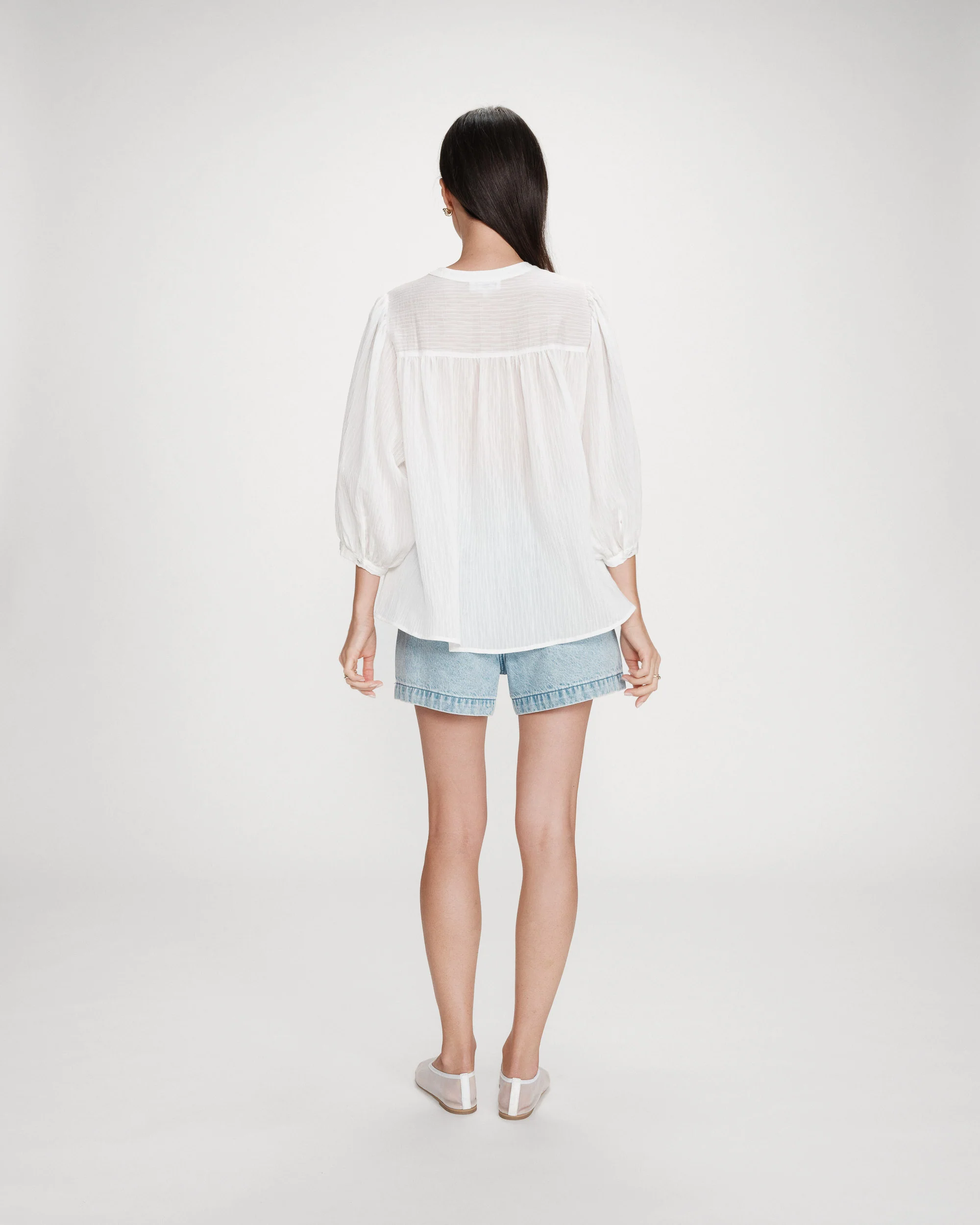 Facile à porter, la blouse VANILLE s’associe parfaitement avec un short en denim pour un look estival, ou avec un jean pour une allure décontractée du quotidien.