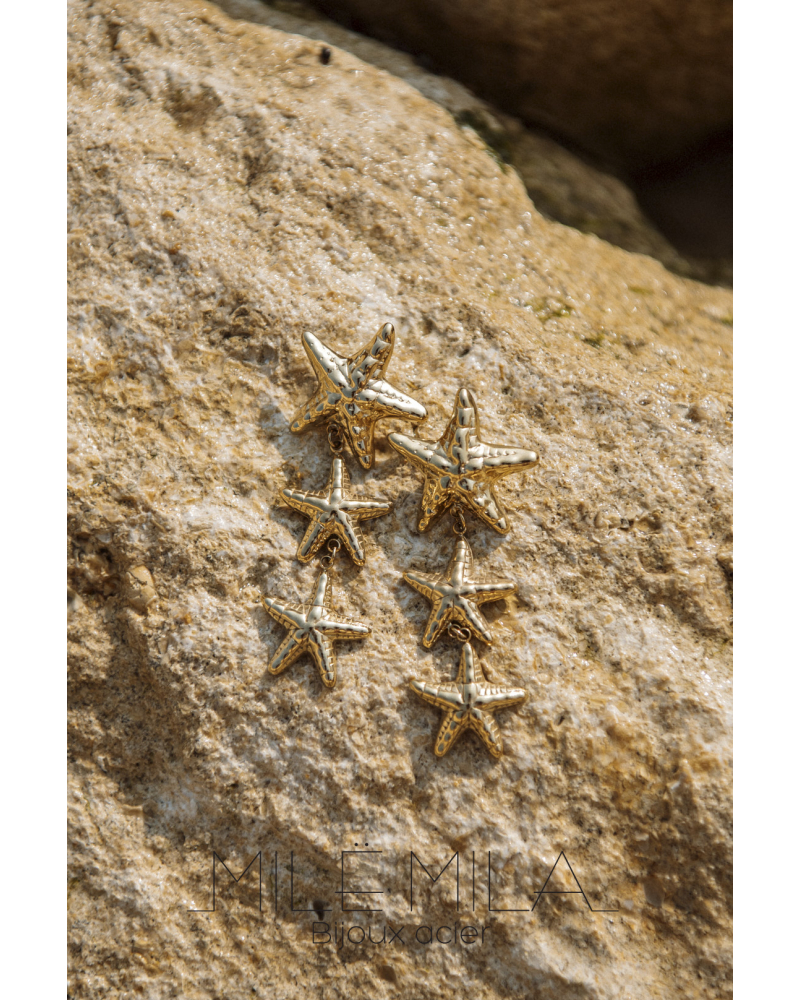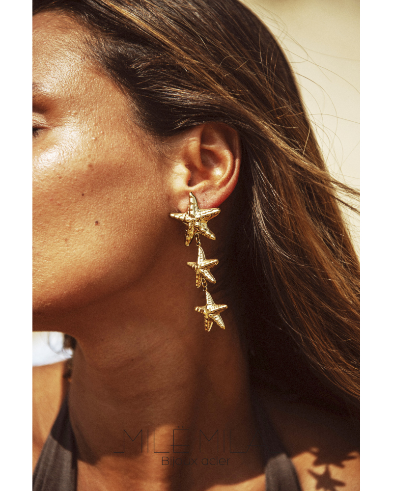 / boucle d’oreille 3 étoiles de mer doré