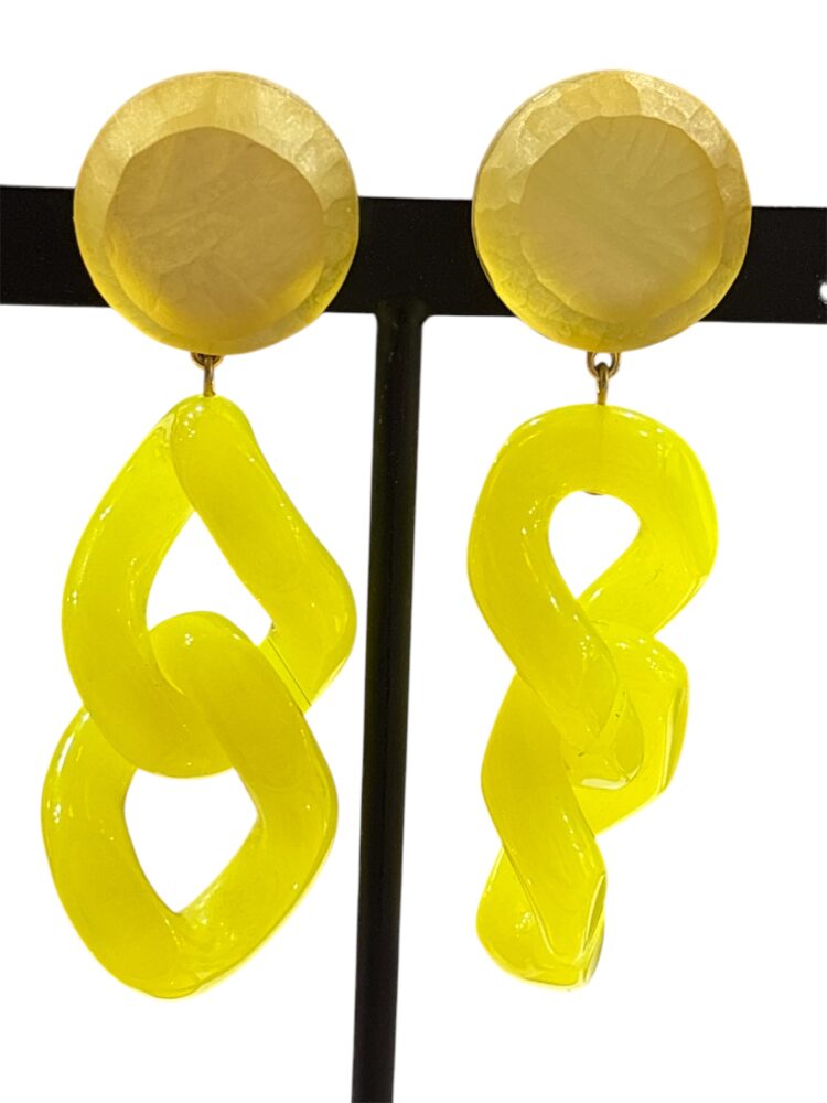 Boucle d’oreille maillons jaune fluo