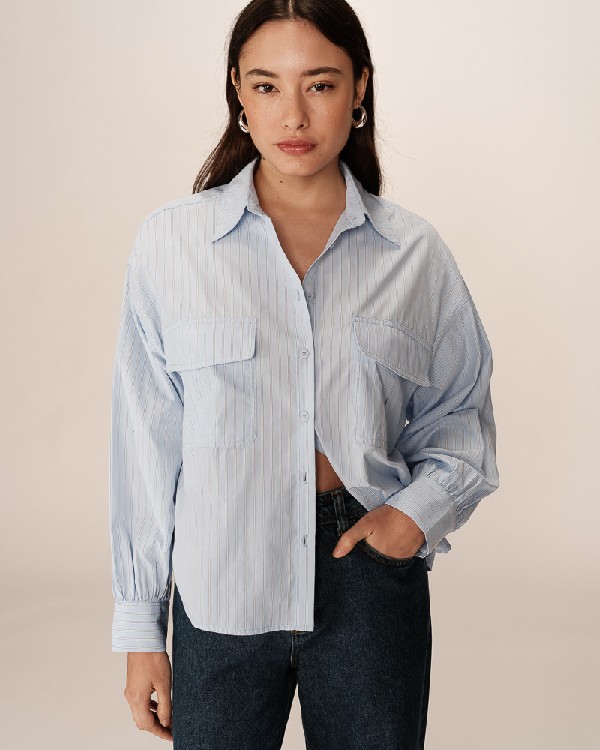 Confectionnée dans un tissu en coton mélangé, la chemise à rayures PHOEBE s'inscrit dans la tendance loungewear. La coupe oversize et le tissu à rayures ont été pensés pour déssiner une silhouette décontractée et tendance. La chemise à manches longues PHOEBE a des poignets boutonnés, un col classique et des poches plaquées à rabats sur le devant. Le modèle est agrémenté d'une broderie exclusive G&M au poignet et rejoint notre gamme en fibres naturelles 'Un Brin de Vert'.