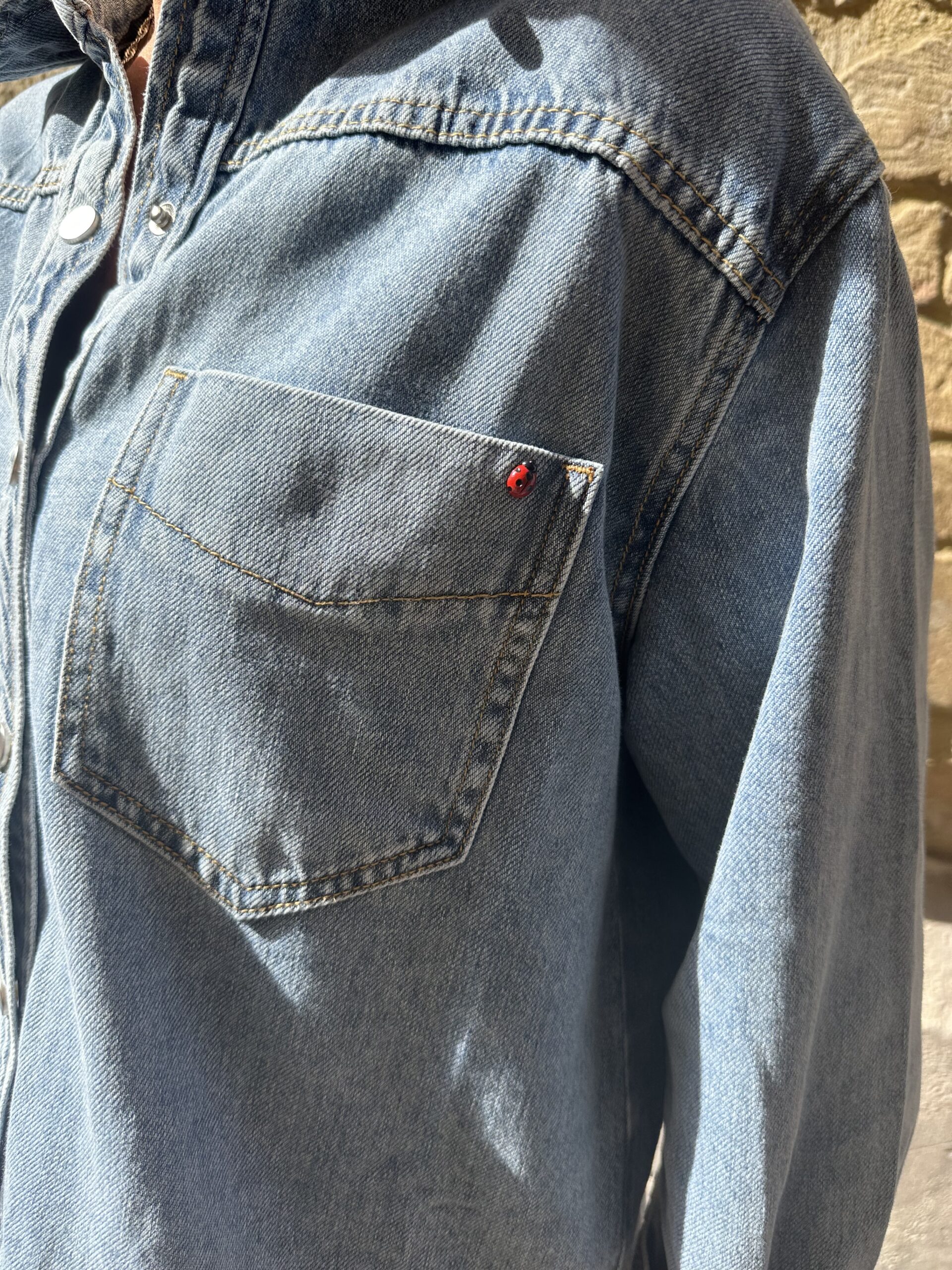 Chemise bleu oversize en cotonPour un look denim authentique, on opte pour le modèle SOFIA bleu.Coupe oversize2 poches cousues à l'avantManches longuesFermeture par boutonnageCouleur : BleuComposition : 100% CotonConseil d'entretien : Lavage à 30°CClara mesure 1m71 et porte une taille XS.
