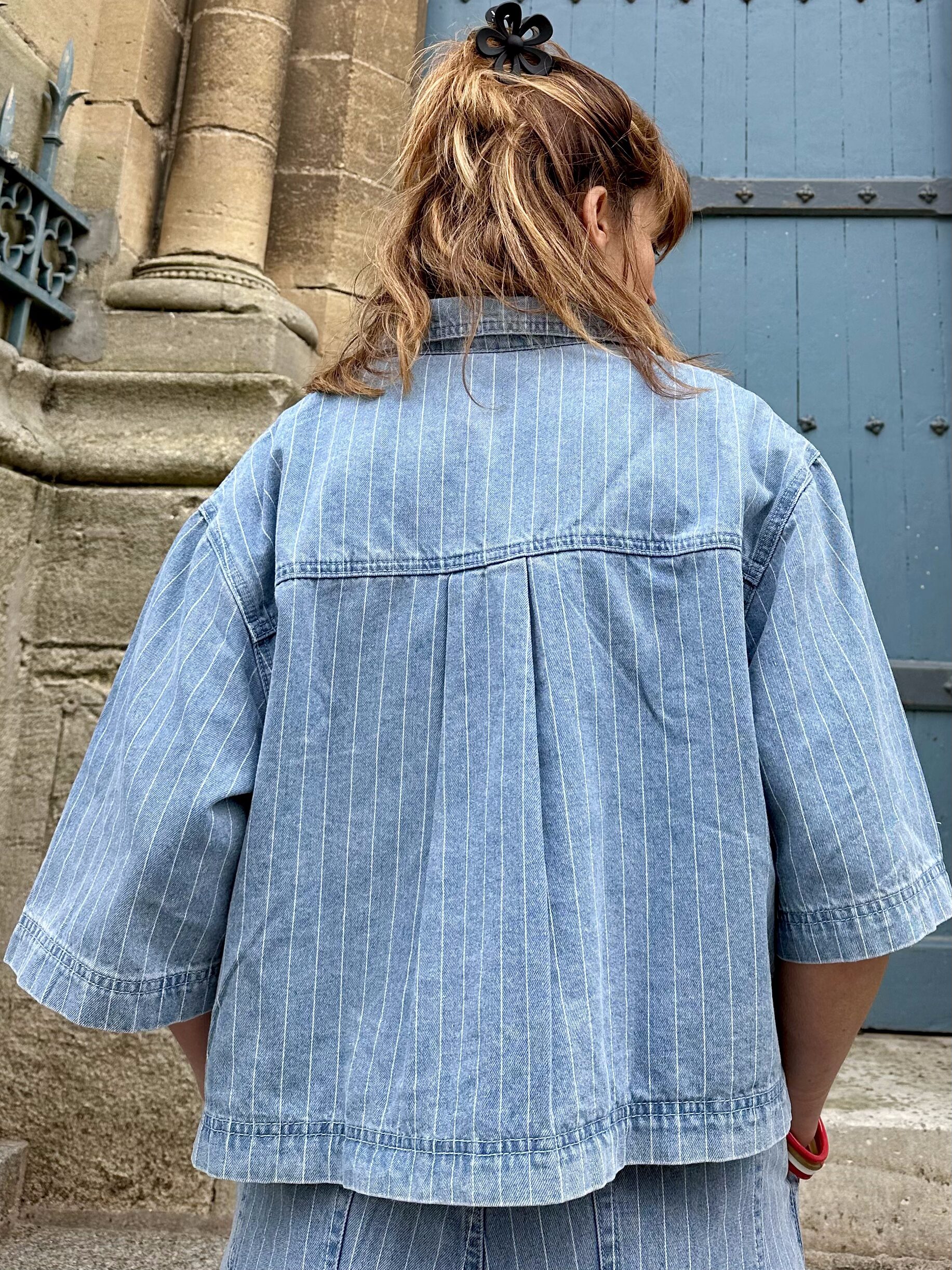 À porter seule ou en total look denim avec le jean pompon pour une allure moderne et assumée.