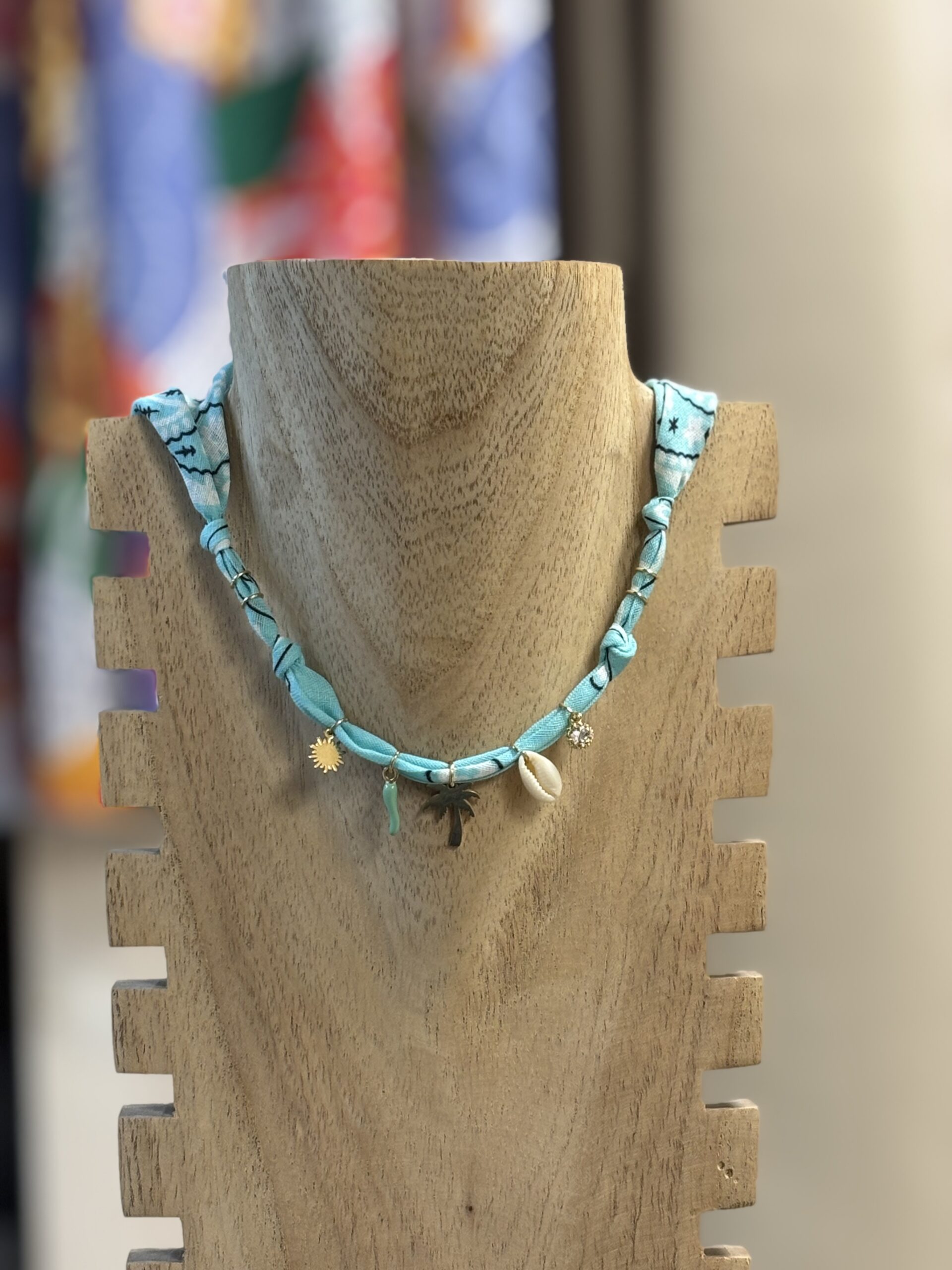 Apporter une touche bohème et élégante à votre tenue avec ce collier de la marque Badhnati. Confectionné à la main dans un tissue coloré au motif bandana, il se noue facilement grâce a son lien ajustable. Polyvalent, il se porte aussi bien en collier, en bracelet ou en chevillière. Adoptez cette pièce pour un look à la fois décontracté et raffiné.