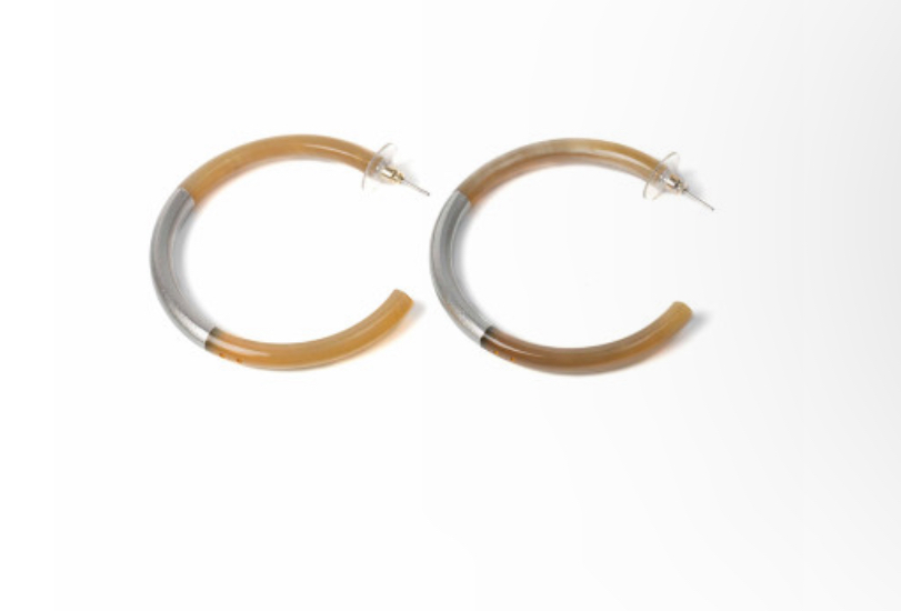 Créoles ronde en corne naturelle partiellement laquée de couleurs.