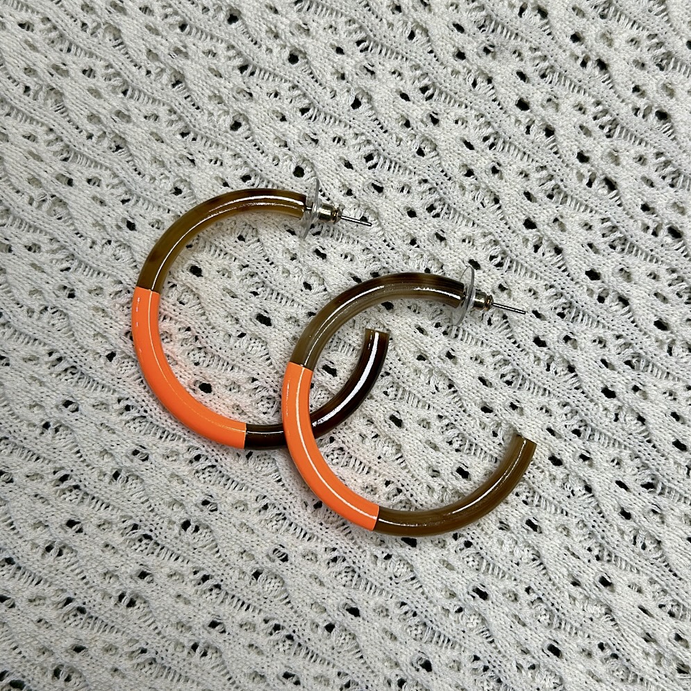 Créoles rondes en corne naturelle partiellement laquée de couleur