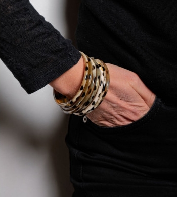 Bracelets en corne de buffle naturelle partiellement laquée de couleurs.