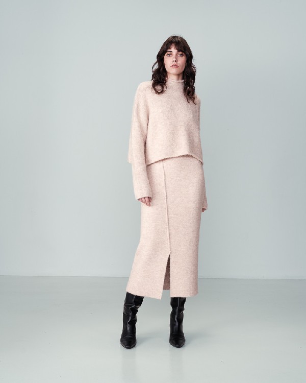La jupe crayon NASTIA est un modèle tendance et féminin. La fente sur le devant souligne la féminité de cette pièce, tandis que le détail de nervure lui ajoute du contraste. La coupe droite et moulante de la jupe mi-longue NASTIA épouse les formes et flatte la silhouette. En maille et confectionnée en laine mélangée, ce modèle est idéal pour la mi-saison. Elégante et féminine, la jupe en maille NASTIA est un basique pour adopter un look minimaliste et raffiné.