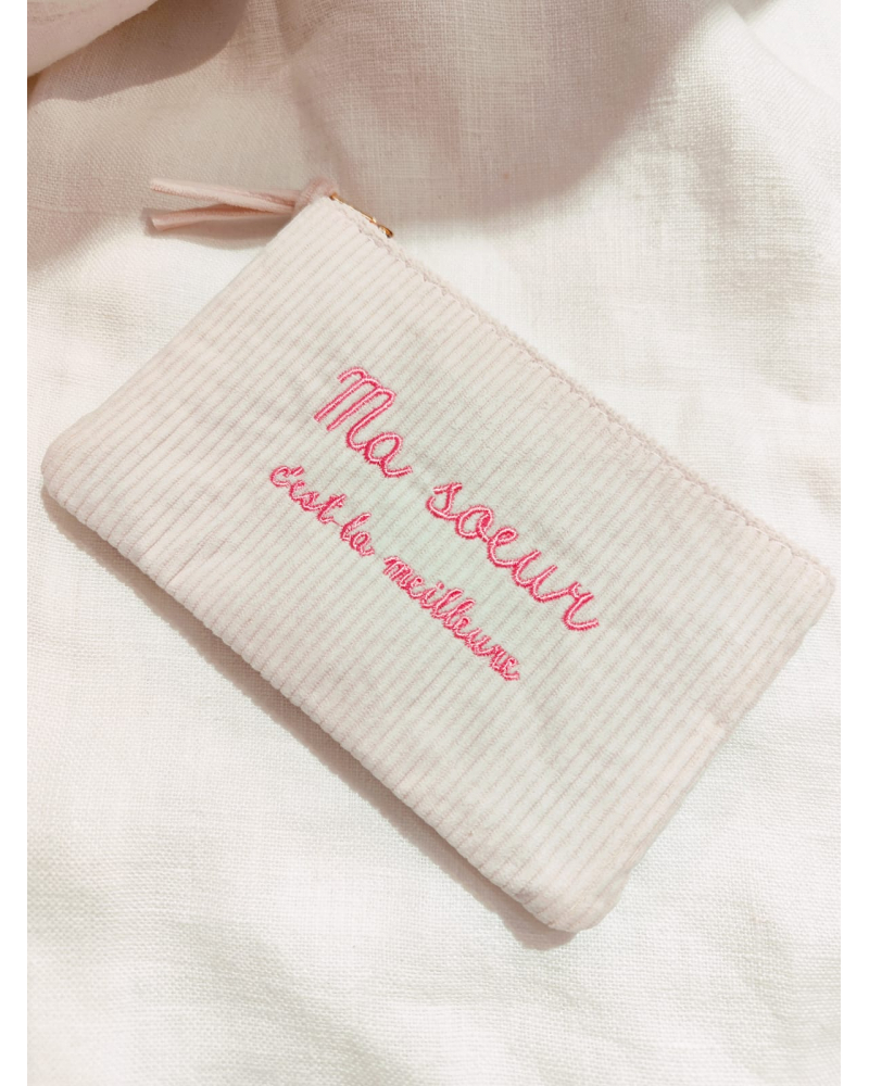 / Pochette côtelée Ma soeur c’est la meilleure rose clair