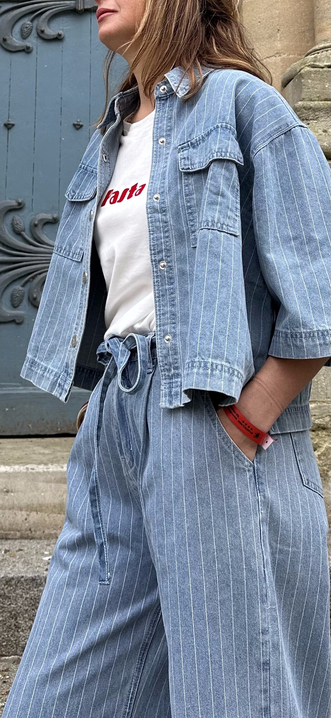 À associer avec un top ajusté ou une blouse fluide pour équilibrer son volume et créer une silhouette féminine et tendance.