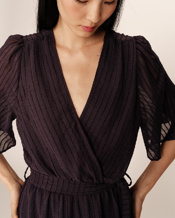 Confectionnée dans un tissu léger et fluide, la robe longue PERSE est doublée mais joue avec la transparence au niveau du dos et des épaules. La coupe trapèze, les manches papillon et l’encolure croisée créent une silhouette intemporelle et élégante. La robe est ornée de volants dans le bas, mettant en valeur son inspiration bohème et romantique. La robe fluide PERSE est dotée d’une taille élastiquée, de passants de ceinture et d’une ceinture amovible qui apportent plus de structure. Cette pièce résolument féminine fait partie de notre collection de fibres naturelles « Un Brin de Vert ».