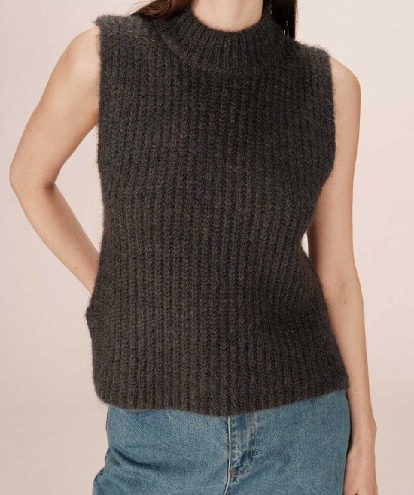 Tricoté dans un mélange doux de polyester recyclé, de laine et d'alpaga, le pull sans manches SABLON a une texture perlée au niveau du col et une coupe droite épurée. Le col montant et les fentes sur les côtés apportent une note graphique et structurée. Inspiré d'un vestiaire urbain et minimaliste, le pull en laine SABLON dessine une silhouette moderne et affirmée.