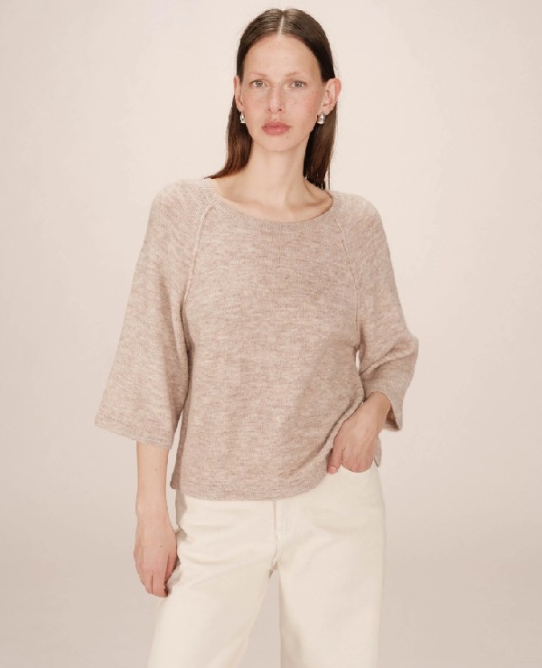 Confectionné dans un fil contenant de la laine et du mohair, le pull large SAM est une pièce chaude et confortable. La coupe large et carrée a été pensée pour intégrer le vestiaire du quotidien. Avec ses détails tels que l'encolure ronde et les manches 3/4, le pull en laine SAM ajoute à la collection une pièce féminine au design élégant et casual.