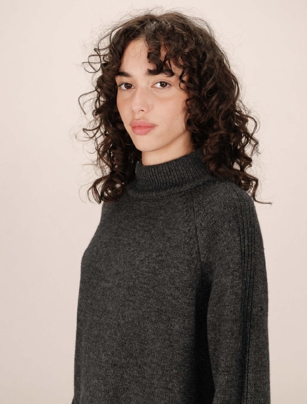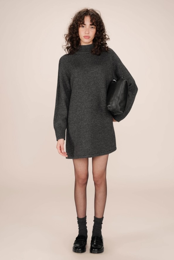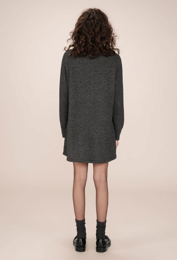 Chaude et confortable, la robe courte SANDRINE est confectionnée en laine mélangée. La coupe trapèze intemporelle et le col montant évoquent un style rétro revisité, tandis que les manches raglan et les détails de tricotage apportent une touche de modernité. La robe pull SANDRINE est un incontournable de la saison qui propose une silhouette élégante et décontractée.