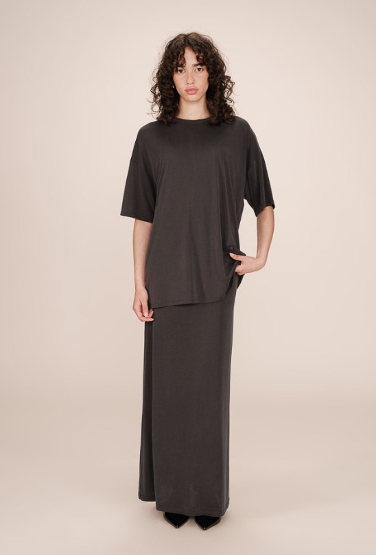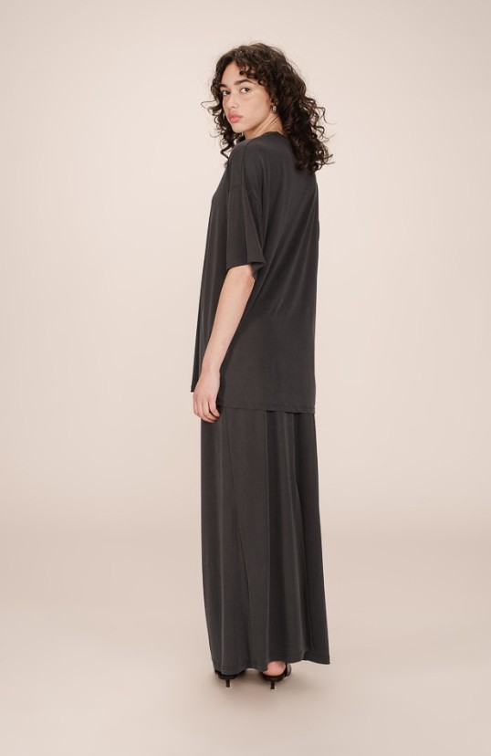 Casual et moderne, le t-shirt à manches courtes SANTO dessine une silhouette fluide et confortable. Confectionné en modal, le modèle offre un tombé naturel et agréable. La coupe longue et décontractée s'associe à des manches courtes et larges pour créer un look effortless et tendance. La taille unique du top en modal SANTO convient à toutes les morphologies.