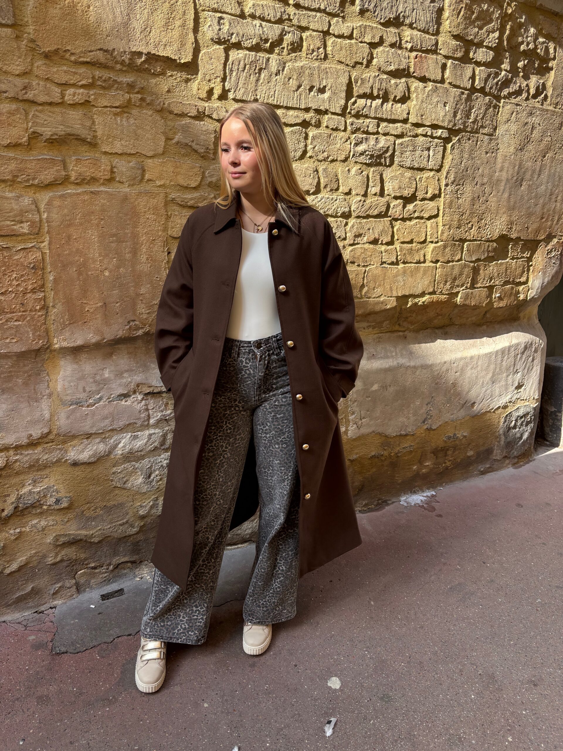 Le trench long SCOTT est une pièce incontournable de la saison, revisitée avec des détails élégants et modernes. Les manches raglan et la coupe droite structurent la silhouette avec sobriété et signent un style intemporel. Inspiré de l'allure parisienne, le trench long SCOTT se distingue par ses boutons dorés gravés G&M et sa ceinture amovible ton sur ton. C'est un essentiel chic et raffiné de la maison.