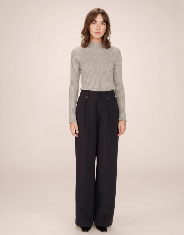 Le pantalon tailleur SEPTIME , à l'allure sophistiquée, est revisité avec des détails subtils. La coupe droite et la taille mi-haute structurent la silhouette, tandis que les plis sur le devant apportent une touche d'élégance classique. Les passants de ceinture ornés de petits boutons ajoutent une finition raffinée. Le pantalon tailleur SEPTIME est un modèle chic et moderne qui s'inscrit dans la tendance officewear .