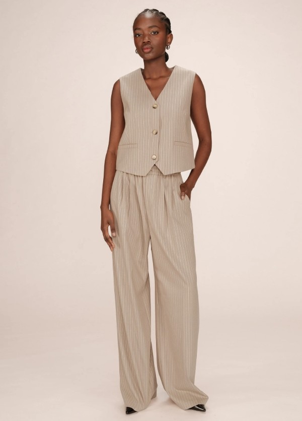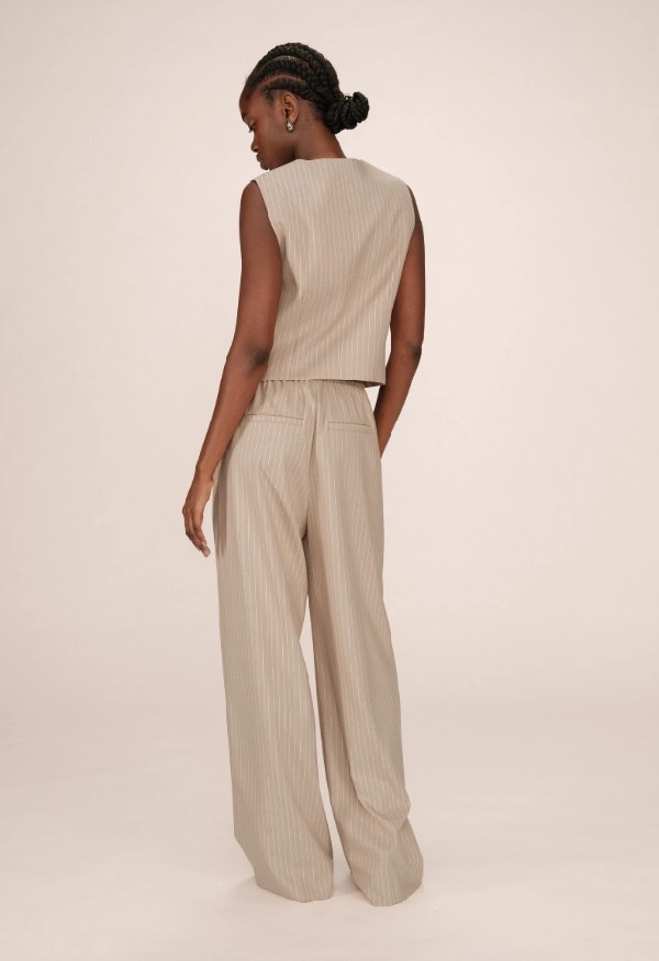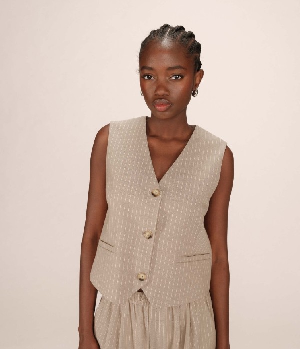 Le veston de tailleur SISTER s'inspire du vestiaire masculin et est revisité avec élégance. La coupe droite et l'encolure en V soulignent une silhouette affirmée entre structure et raffinement. Le veston à rayures SISTER possède des boutons effet corne et des fausses poches passepoilées qui apportent une touche de sophistication discrète. C'est un modèle à l'allure androgyne et contemporaine, idéal pour un look tailoring chic.