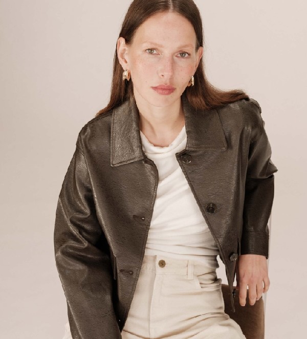 La veste en simili cuir SOLANGE est un incontournable du vestiaire automne/hiver. Sa coupe droite et ses finitions soignées dessinent une silhouette structurée à l'élégance moderne. La veste droite SOLANGE présente des manches longues à poignets boutonnés et une ouverture boutonnée sur le devant. Le modèle est doublé.