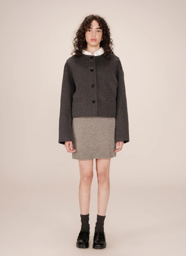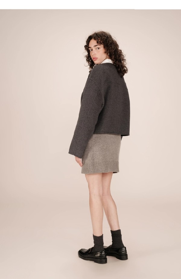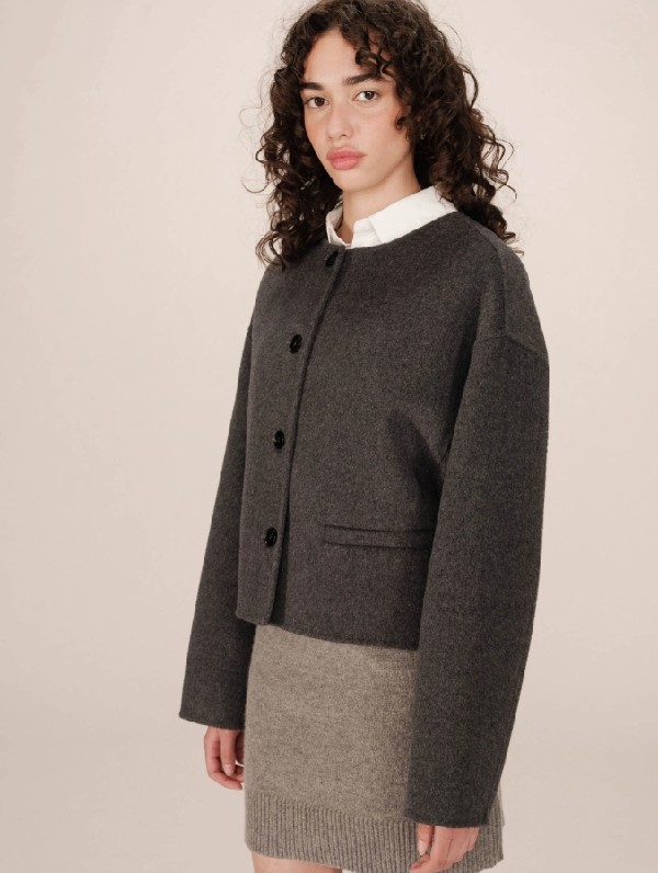 La veste courte STOMY a une coupe boxy et une encolure ronde qui dessinent des lignes modernes et minimalistes. Confectionnée à la main dans un tissu en laine mélangée, la veste boutonnée STOMY est une pièce chaude et élégante qui s'invite dans le vestiaire de la saison. Les détails travaillés, tels que la patte de boutonnage sur le devant et les boutons gravés G&M, en font un modèle soigné aux finitions minutieuses.