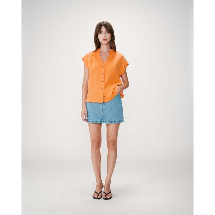 La blouse WESRA séduit par sa légèreté et son esprit romantique. Confectionnée en gaze de coton 100 %, elle est douce, aérienne et idéale pour les beaux jours.
